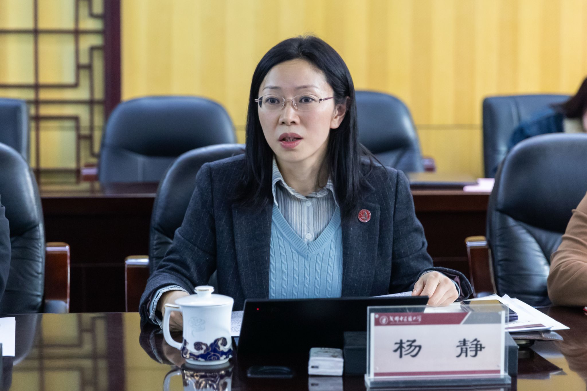 国锦琳从学院与优势学科布局、人才队伍建设、科研平台与基地建设、特色研究方向、高层次项目与代表性成果等方面,对我校人文社会科学发展情况作了系统汇报。他重点介绍了学校通过实施“杏林学者”学科人才提升计划、“远志计划”等举措,构建起中医药人文社科高层次人才梯队;依托多个哲学社会科学平台,在出土医学文献与文物整理研究、中医哲学与生命伦理、西南民族医药文献与文化、民族传统体育、中医药国际传播等领域形成了特色鲜明、成果丰硕的优势方向。